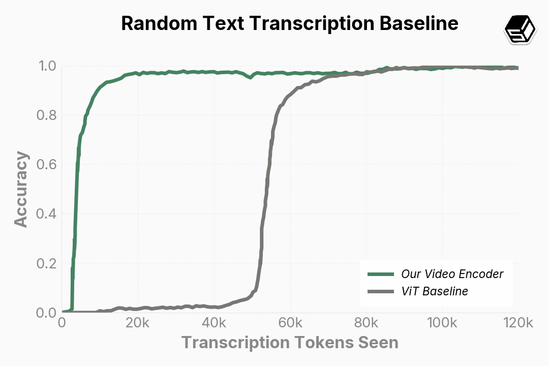 Comparing our video encoder to a ViT, we observe ~100x faster convergence during training (Figure ?).